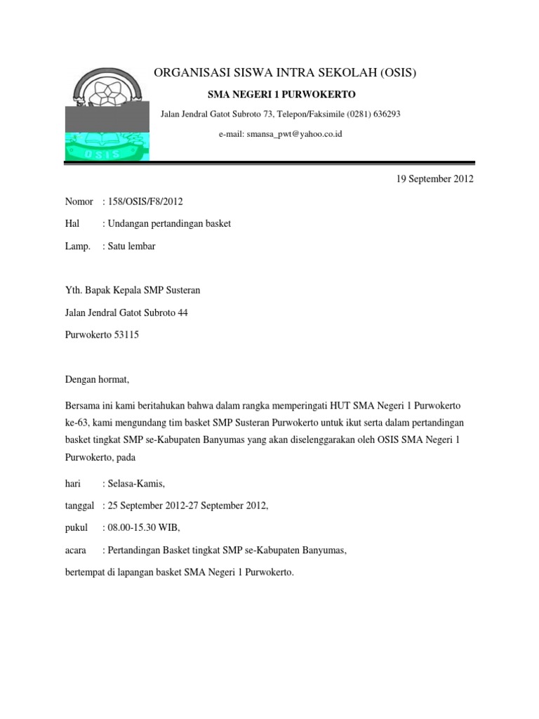 Osis sma n 2 banjarnegara jl. 13 contoh surat undangan resmi dari desa untuk ketua rt. 11 contoh surat dinas sekolah pegawai osis dll seper lengkap. 10 contoh surat dinas sekolah untuk kedinasan sekolah terlengkap. Contoh surat resmi osis perihal pemilihan ketua osis.