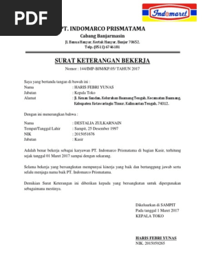 Surat Keterangan Kerja Indomaret : 13 Contoh Surat Keterangan Kerja Atau Surat Keterangan Karyawan Lengkap : Check spelling or type a new query.. Check spelling or type a new query. We did not find results for: Maybe you would like to learn more about one of these?